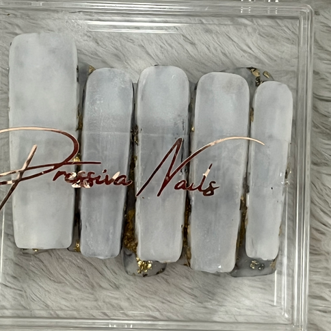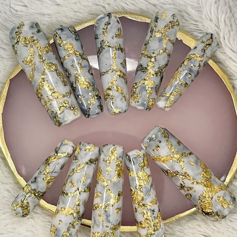 Each nail is uniquely designed, mimicking the natural flow of marble stone—making Golden Marble not just a manicure, but a wearable piece of art. It’s clean, elevated, and effortlessly powerful.